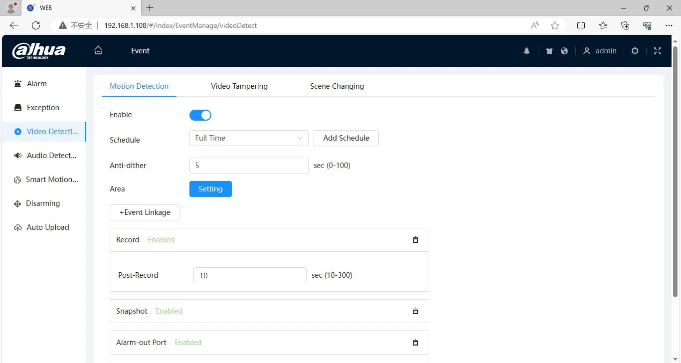 > Abnormality detection: Motion detection, privacy masking, scene changing, audio detection, no SD card, SD card full, SD card error, network disconnection, IP conflict, illegal access, and voltage detection.