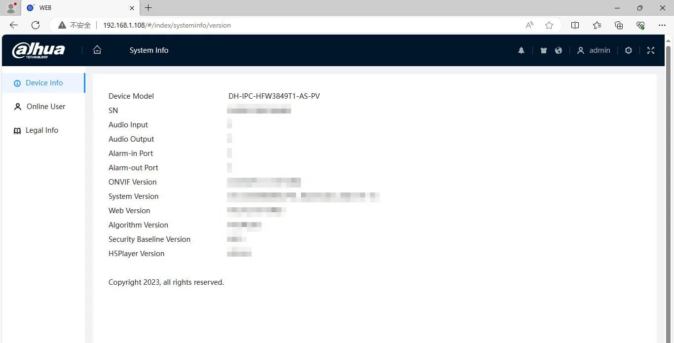Video encryption;Firmware encryption;Configuration encryption;Digest;WSSE;Account lockout;Security logs;IP/MAC filtering;Generation and importing of X.509 certification;syslog;HTTPS;802.1x;Trusted boot;Trusted execution;Trusted upgrade |