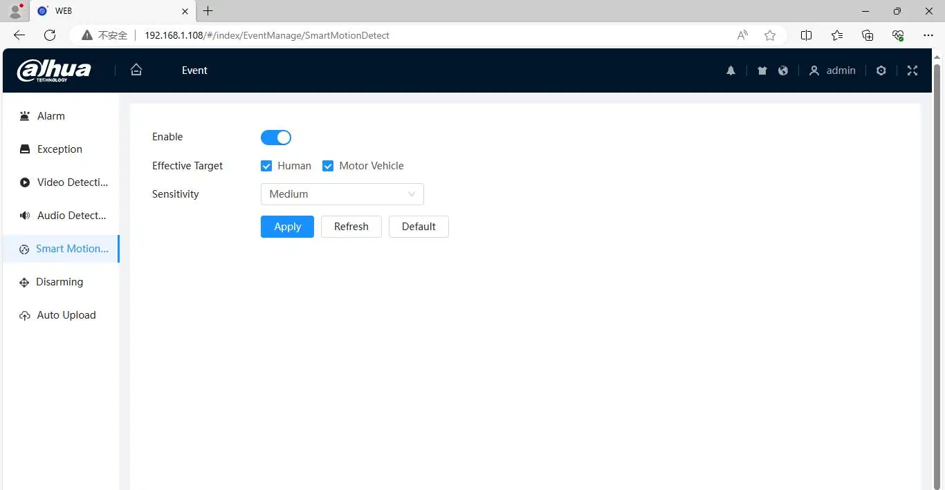 No SD card; SD card full; SD card error; network disconnection; IP conflict; illegal access; motion detection; video tampering; tripwire; intrusion; scene changing; audio detection; voltage detection; external alarm; SMD; security exception |