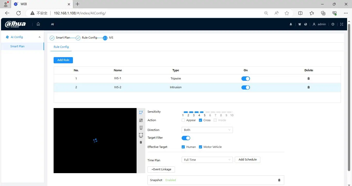 > Intelligent monitoring: Intrusion, tripwire (the two function support the classification and accurate detection of vehicle and human)
