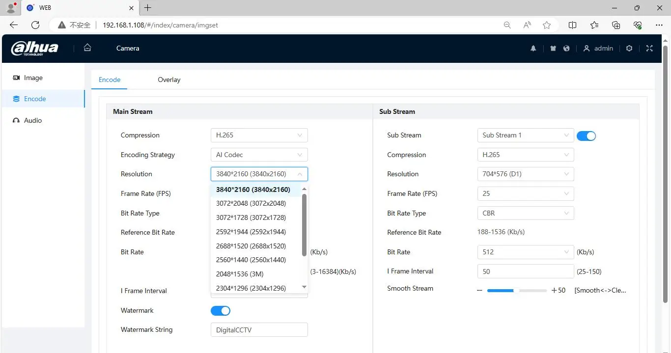 Main stream: 3840 × 2160 @(1 fps–25/30 fps) |