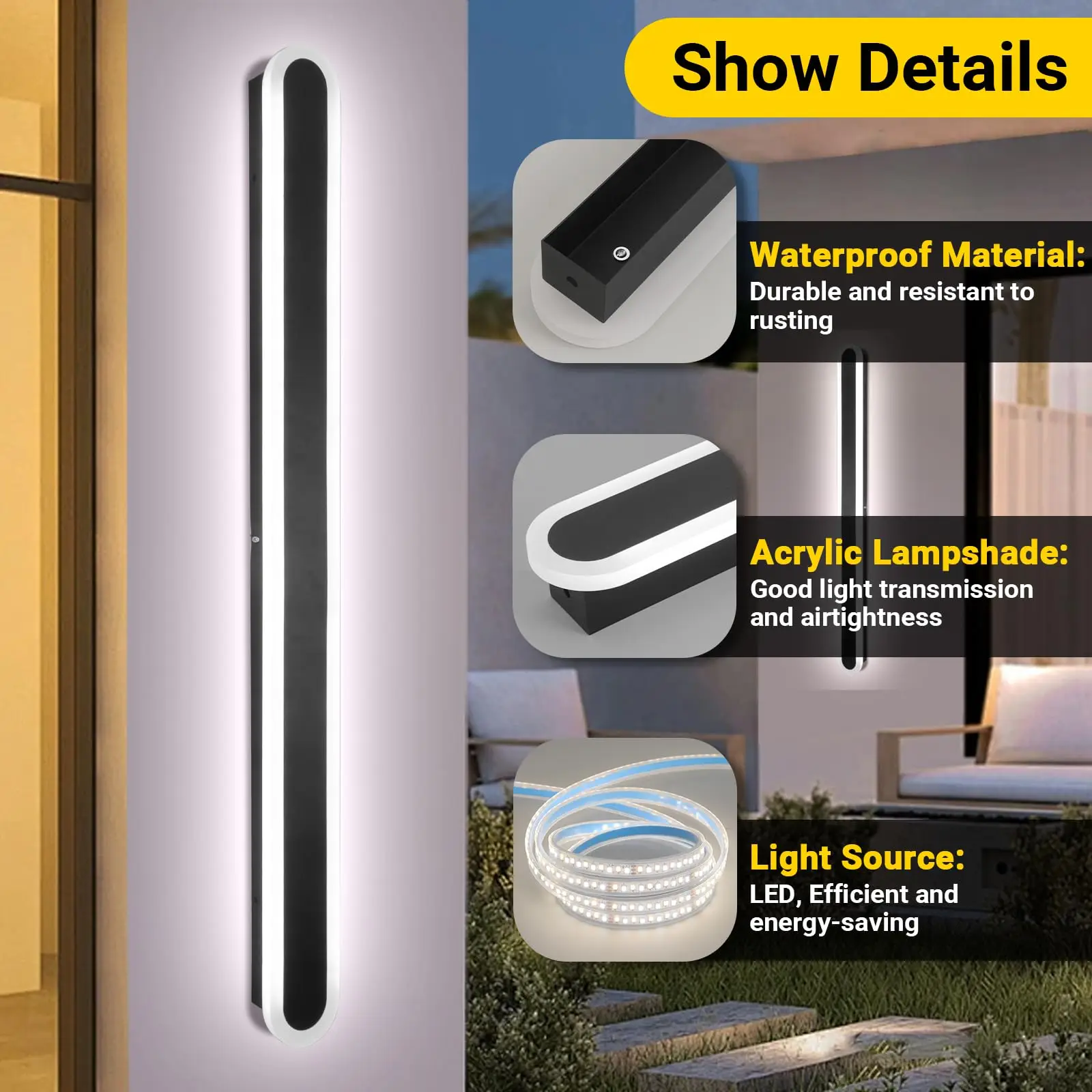 Made of high-quality acrylic, the light is soft and uniform. Its glue seal design effectively prevents the intrusion of rain and mosquitoes, ensuring the long-term durability of the lamp and keeping the interior clean.